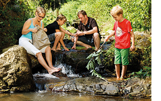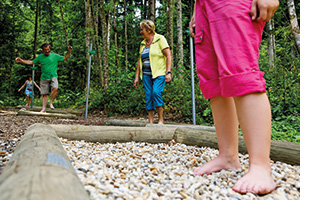 Erlebnis-WasserparkPlanschen, spritzen, spielen - der Abenteuerspielplatz bietet jede Menge Spaß. | Bachwasser-Kneipp-PfadBarfuß-Kneippen regt die Reflexzonen an und bringt Erholung für Körper, Geist und Seele. | Wald- und Jagdlehrpfad mit AussichtsturmWissenswertes rund um den Wald und ein sensationeller Weitblick warten auf die Besucher. |